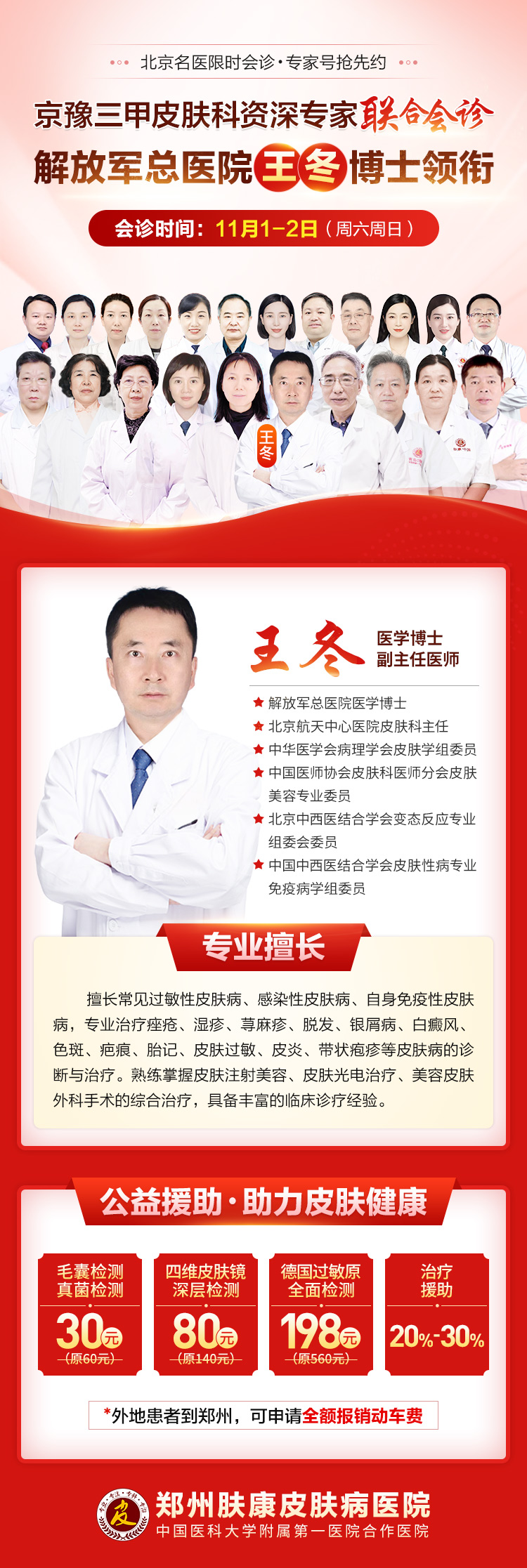2025年11月1日-2日,郑州肤康皮肤病医院特邀王冬博士莅临肤康