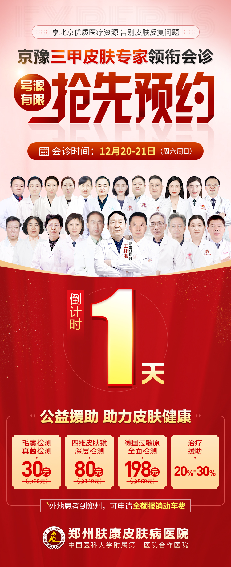 12月20日-12月21日,郑州肤康皮肤病医院特邀王怀湘主任莅临肤康